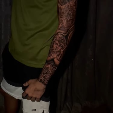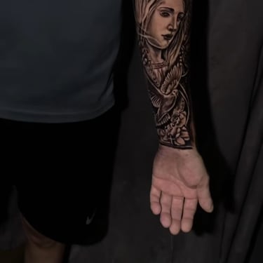 Sou especialista em tatuagens preto e branco, com foco em realismo e arte delicada.